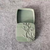 ![]() 松花硯の石材は、白系から茶、モスグリーン、緑色まで種類が多いです。 松花硯は石を切り出す方向により、縞(しま)紋様が硯の丘にでるもの、側面に出るものがございます。 |