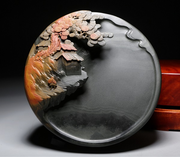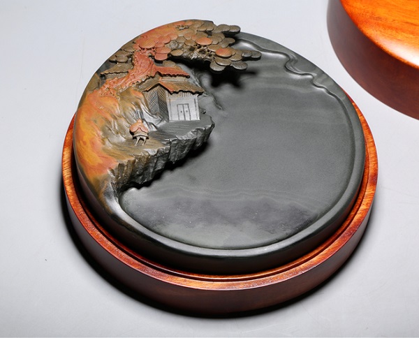 歙硯 金暈 「秋山訪友硯」 |