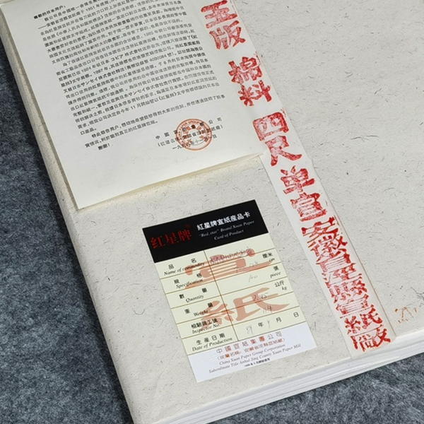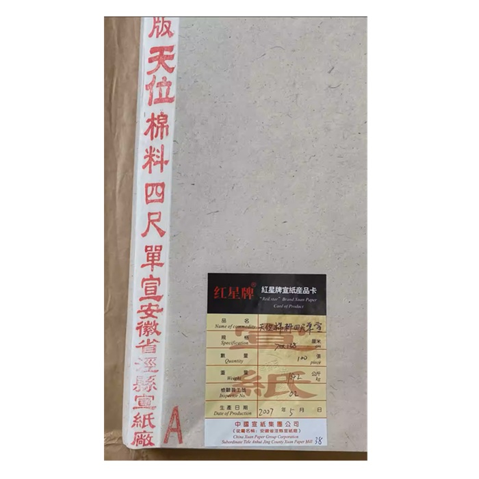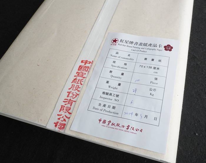 ↑↑↑製造年月日は検品カードに書いてます。 商品説明 ■手漉き ■原料:青檀皮、砂田稲草 ■産地:中国安徽省県 ■用途:書道、水墨画 ☆伝統製法でつくられる高級宣紙です。ニジミ、発墨も素晴らしいです。原料は自然漂白し、 熟練の職人の手作業で漉いた宣紙は1枚1枚、自然乾燥しています。 少し厚めの紙をご希望のお客様は玉版箋がおすすめです。 |