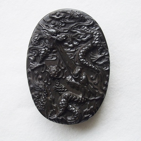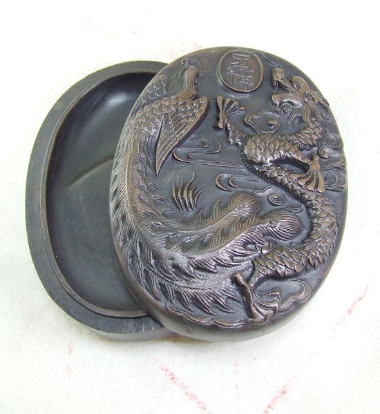 澄泥硯 鳳凰龍刻硯 5吋 |