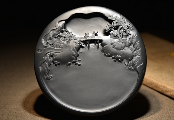 歙硯 金暈 「秋山訪友硯」 |